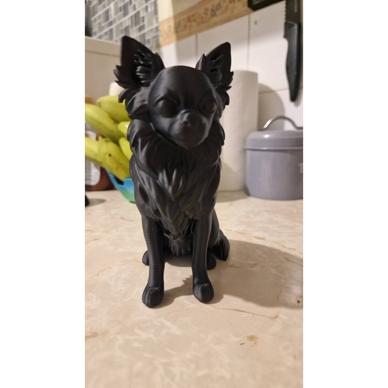 Miniatura Decorativa de Cachorro Chihuahua de Pelo Longo – Estilo Artístico – Colecionável