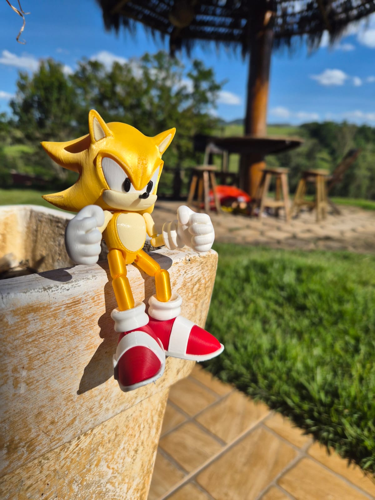 Esta figura de ação do Sonic Dourado possui 13 cm de altura e é totalmente articulada, permitindo poses variadas para colecionadores e fãs. Feita em material resistente, traz um acabamento detalhado com pintura dourada vibrante que destaca o personagem clássico em sua versão rara. Ideal para exibição ou brincadeiras, a figura combina durabilidade e design exclusivo, sem necessitar de baterias ou partes eletrônicas, facilitando o manuseio e a manutenção. Representa uma peça chave para quem busca uma figura oficial e de qualidade para compor sua coleção Sonic.